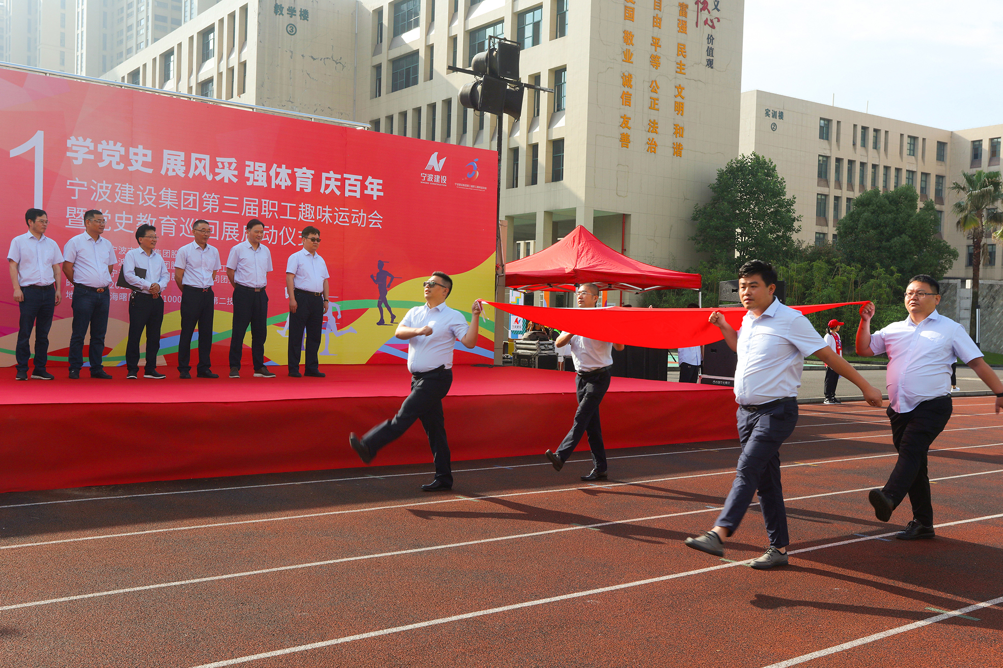 “永遠跟黨走,我們都是建設者”-寧波建設集團職工趣味運動會引爆紅色活力