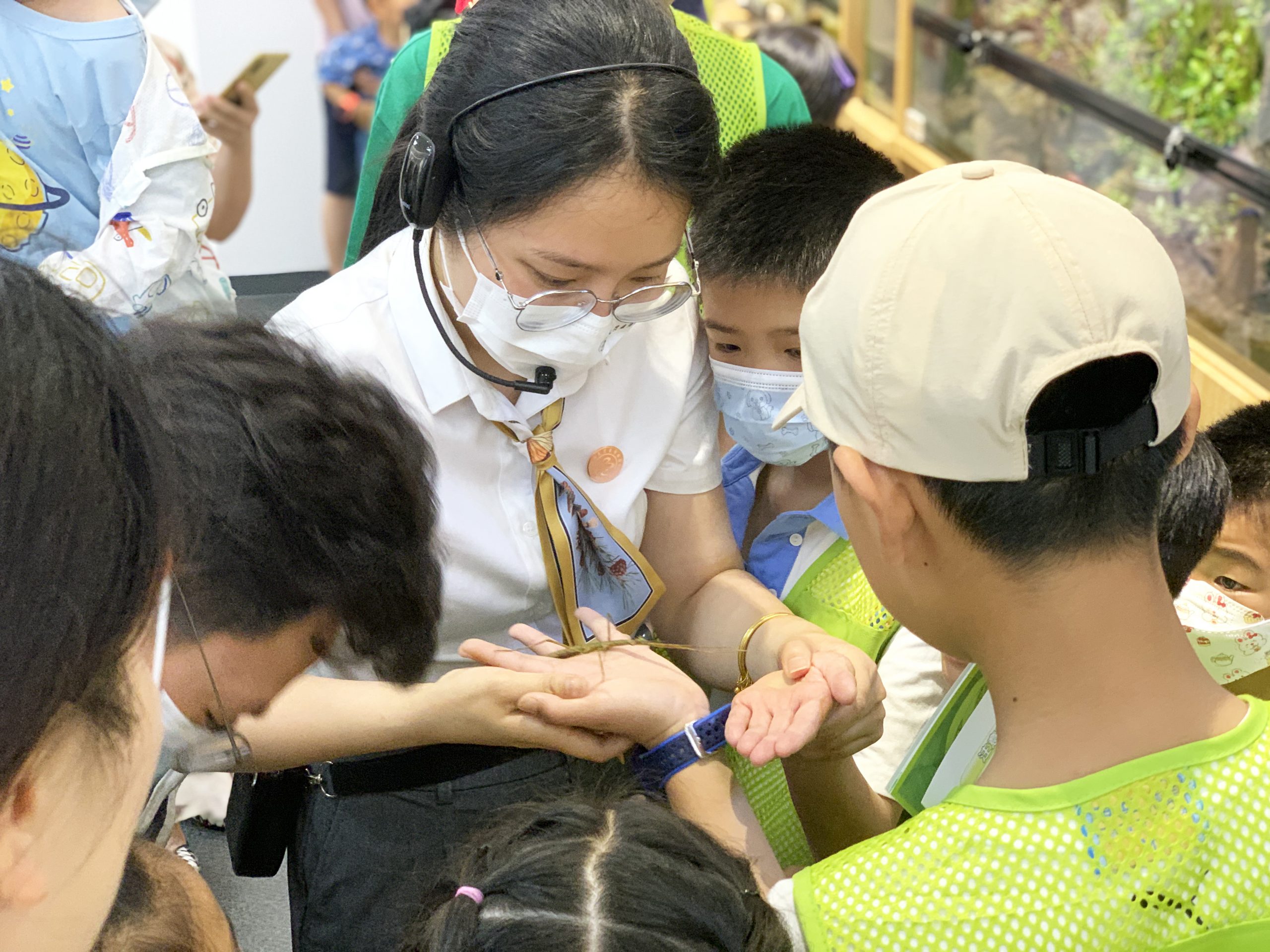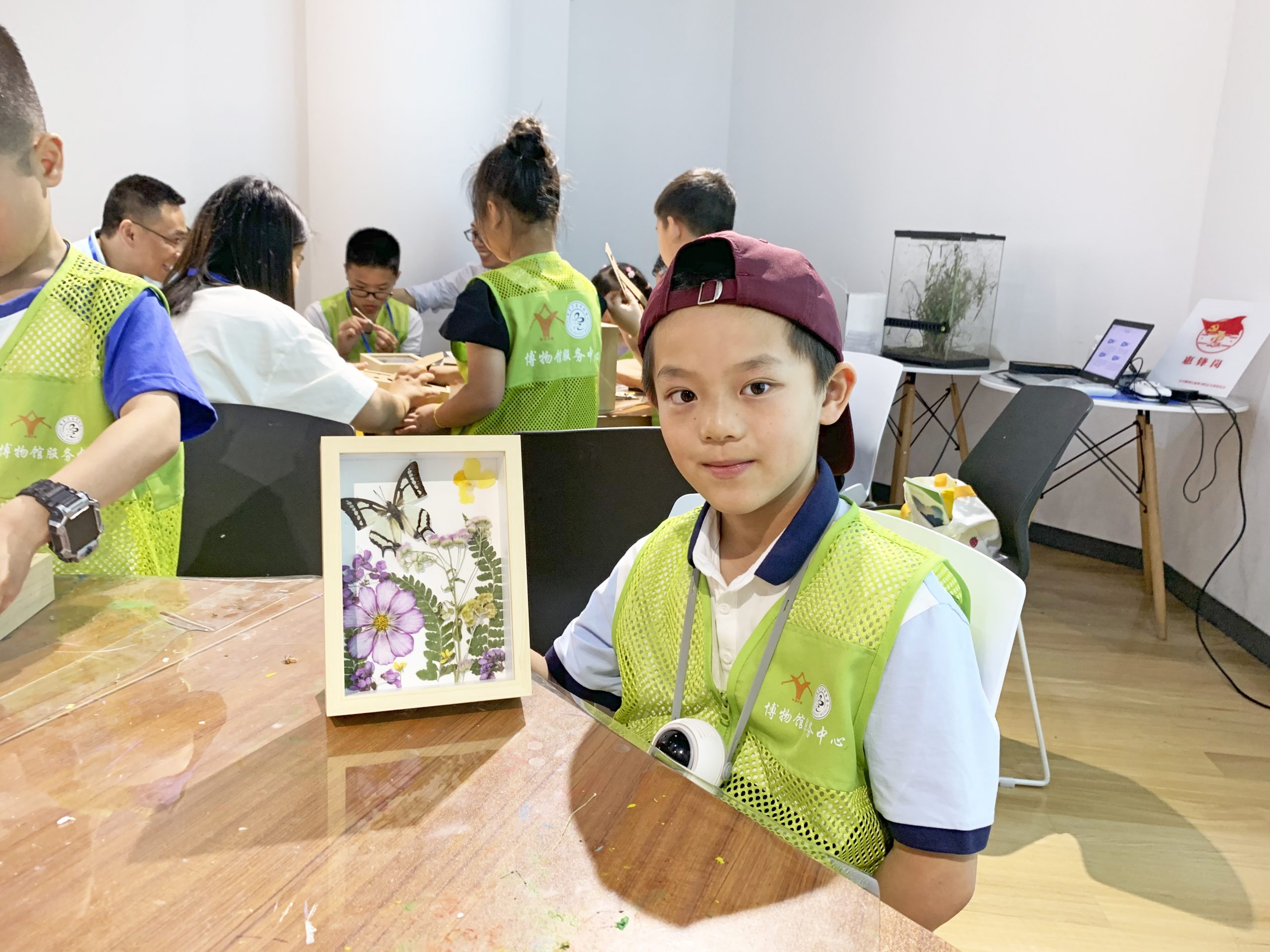 ? ? ? ?參觀結束后,小朋友們在老師的帶領下,開始制作蝴蝶標本。通過標本制作,既讓孩子近距離觀察蝴蝶的形態特征,又能鍛煉孩子的動手能力。孩子們還近距離接觸了活的竹節蟲,膽子大的孩子還把竹節蟲們放在手心玩耍了起來。