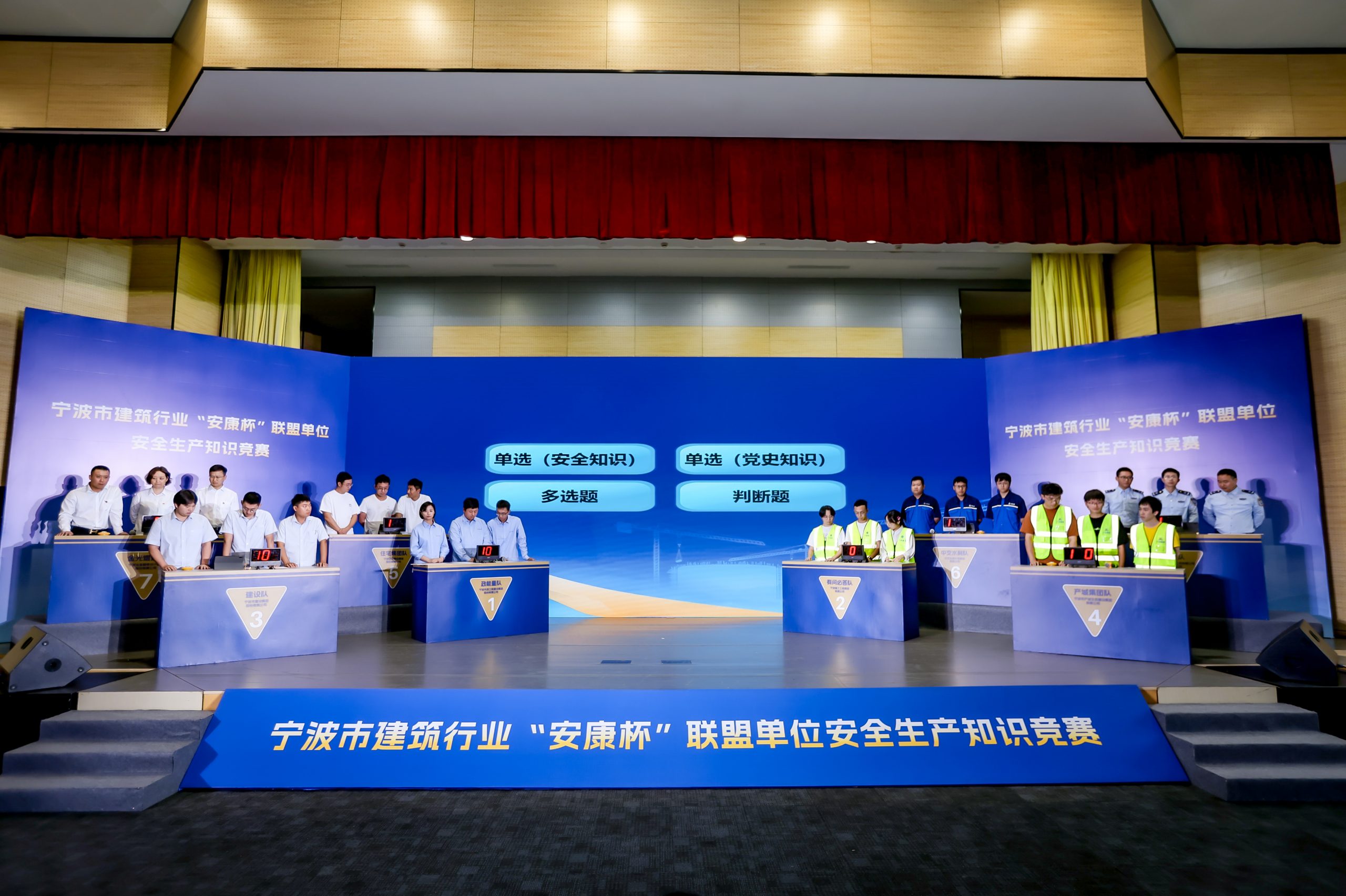 ? ? ? ? 9月27日,由寧波市海員建設(shè)工會(huì)主辦、寧波建工股份有限公司工會(huì)承辦的寧波市建筑行業(yè)“安康杯”聯(lián)盟單位安全生產(chǎn)知識(shí)競(jìng)賽圓滿舉行。
