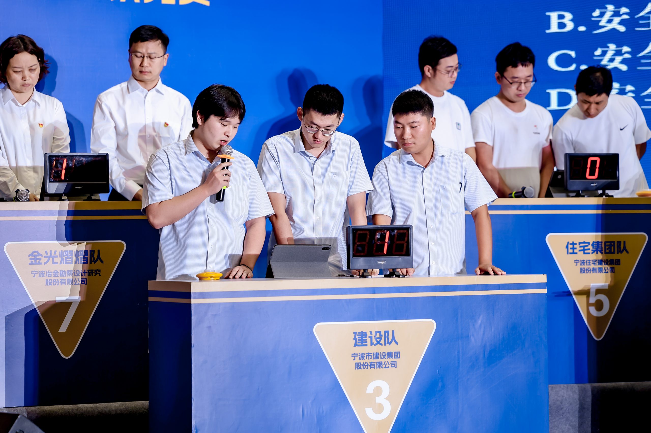 ? ? ? ?參與此次競(jìng)賽的8支代表隊(duì)由市建筑行業(yè)“安康杯”聯(lián)盟單位組成,比賽圍繞安全相關(guān)法規(guī)標(biāo)準(zhǔn)、安全生產(chǎn)應(yīng)知應(yīng)會(huì)、應(yīng)急處置、黨史知識(shí)等多個(gè)方面,設(shè)置有必答題、搶答題、挑戰(zhàn)題三類題型,題目靈活,重點(diǎn)突出,全方位考察選手們的安全生產(chǎn)理論水平。