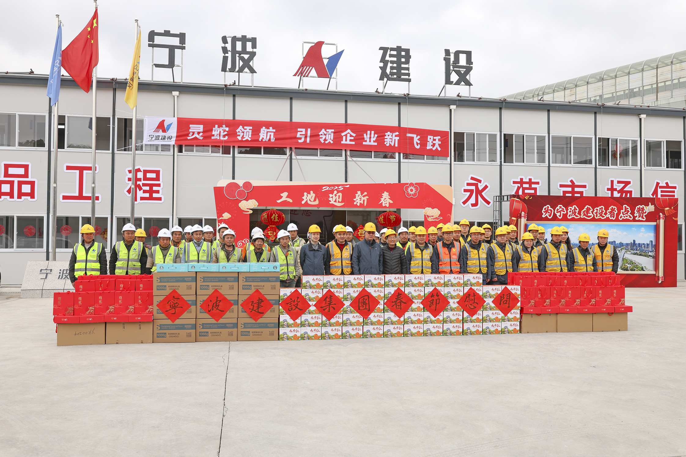 ? ? ? ?春節前夕,為表達對留守一線建設者們的感激與關懷,寧波建設集團總經理章旭波、工會主席苗志春等領導一行,先后前往沿江路項目、寧波銀行數據中心項目、萌恒總部、預拌混凝土車間等地,開展新春慰問活動。他們將新春的美好祝福送到每一位工人手中,讓這些遠離家鄉的建設者們在寧波也能感受到家的溫暖,請為寧波建設者點贊。